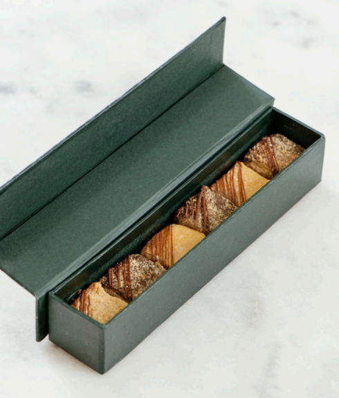 Caixa personalizada com 6 unidades de palha italiana branca e preta.